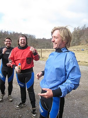 Saturday we were picked up by John from Full on Adventure and taken white water rafting on the Findhorn which was high and hairy and swollen with meltwater. Then in the evening Allan from One Pot Borrowed once again excelled himself by coming round and cooking our bedraggled and slightly whisky tarnished party another exceptional meal in the house.