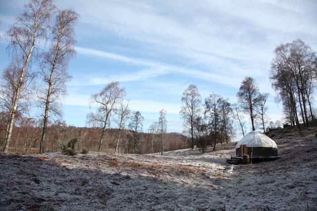 Going on 6 months from the first Red Kite Yurts course at Inshriach the yurt is finally covered. It has a Victorian bed in it (just in need of restoring), from which you can see the stars through the crown. It has a wood burner made from old gas bottles, a door from old floorboards and a floor from old scaffold planks still to be polished up. The olive walls and the bothy furniture give it a real campaign feel. Within the month it will be in the woods and ready to rent out.
