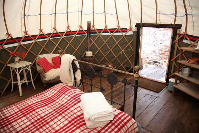 Very exciting news from the front, the yurt is complete and has taken up residence in the woods. It is a tardis of a thing, being very tall and shaped like a Christmas cake it looks small from the outside but once inside it is spacious and domed and airy. We scratched together a Victorian double bed, a wood burning stove, a little mahogany table and all the other furniture so that Helen Abraham could take some photos for a possible press scoop next weekend. I just need to cut a hole for the chimney, put some slats in the bed and caulk the gaps between the boards and it will be a cosy woodland getaway (outdoorsy couples preferred) or alternatively I can move the contents for more managerial encounters.
