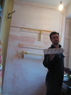As Hannah, Lucinda and Ollie left so Mirra and Jess arrived. To the lilting French strains of Georges Brassens the scullery and pantry became a soft lemony yellow, highlighted rather than blighted by the orange shutters. Now just the kitchen remains….